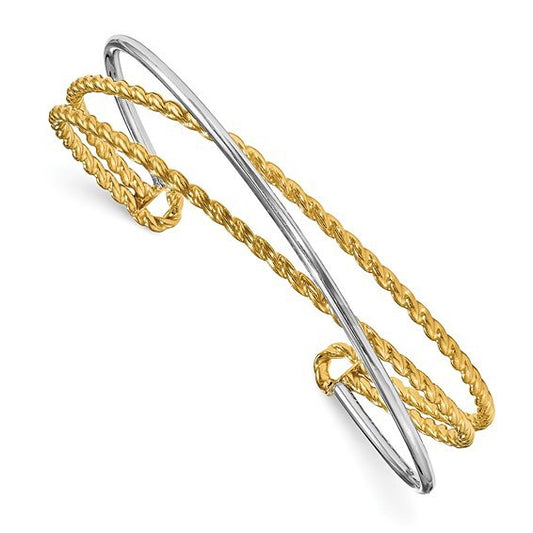 Leslie's 14K Two-tone Polished Textured Cuff Bangle