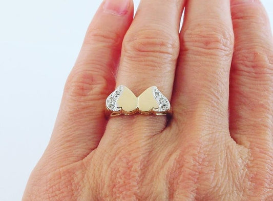 14k Lab Created Ruby and Diamond Double Heart Ring